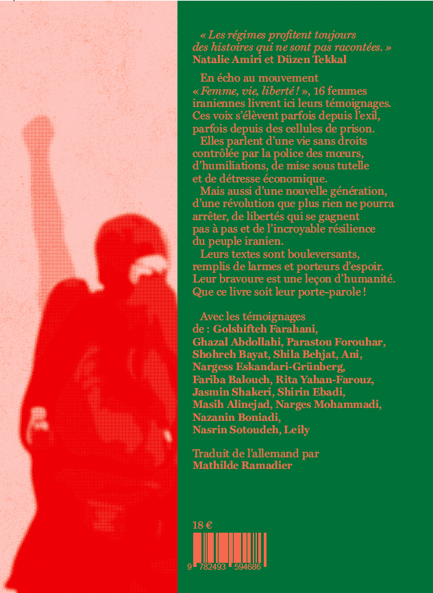 Le livre clé du soulèvement en cours. Le 1er mars paraît un recueil de textes de militantes iraniennes, kurdes et baloutches, que j’ai eu l’honneur de traduire, pour les Éditions du Faubourg. Ce livre est paru en 2023 en Allemagne, édité par deux journalistes iraniennes et allemandes, Natalie Amiri et Düzen Tekkal, qui ont réuni les témoignages de quinze femmes, libres ou en prison, en Iran ou en exil, dont l’actrice Golshifteh Farahani, et Nargès Mohammadi, prix Nobel de la paix 2023.