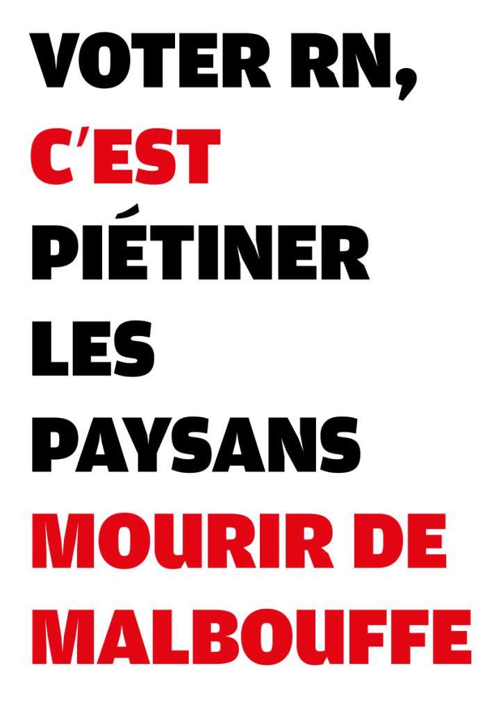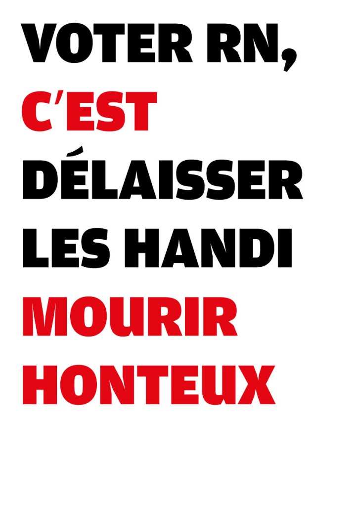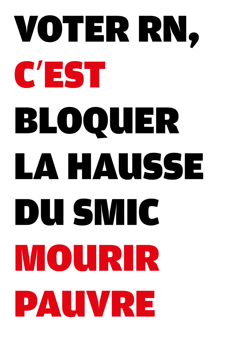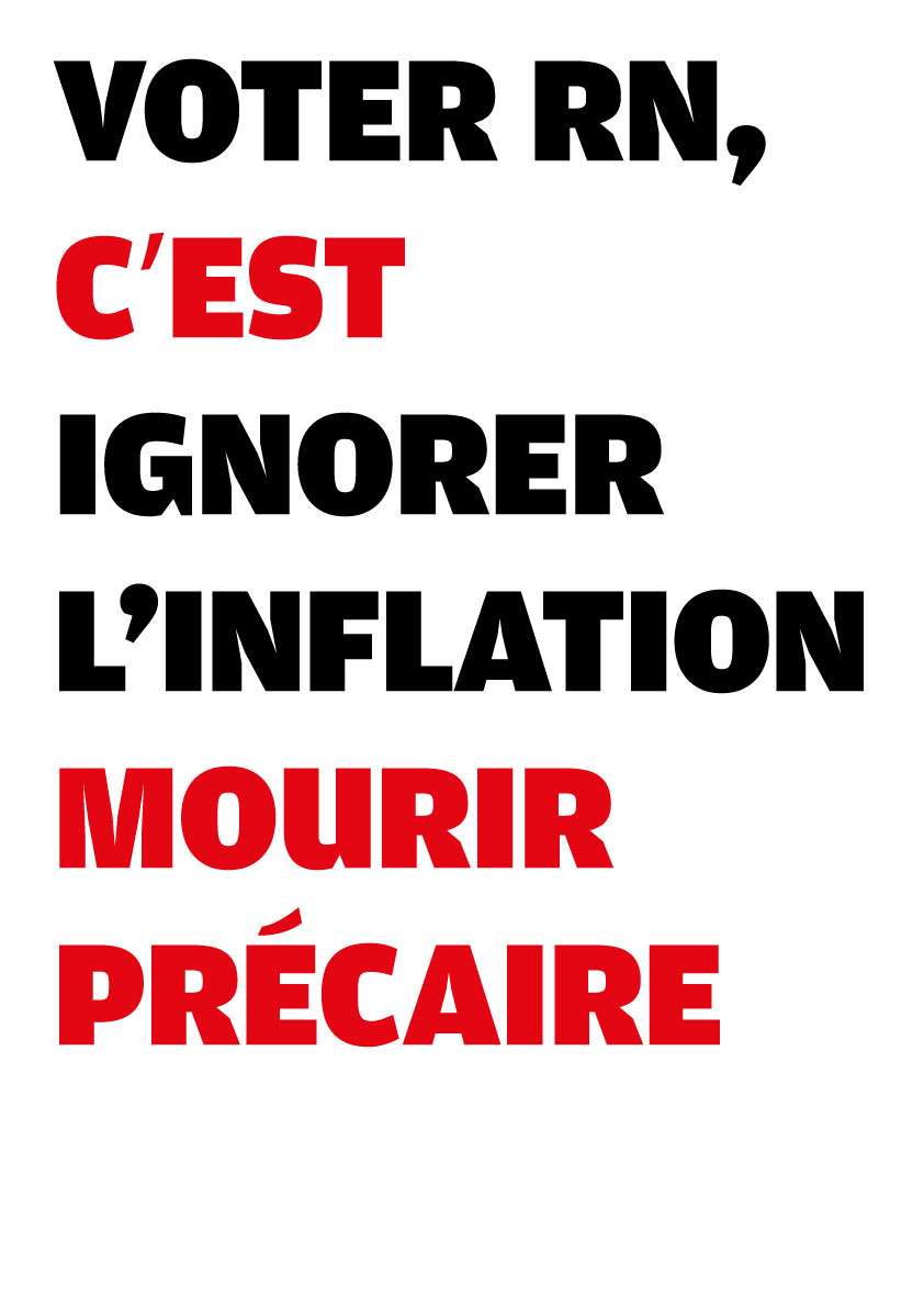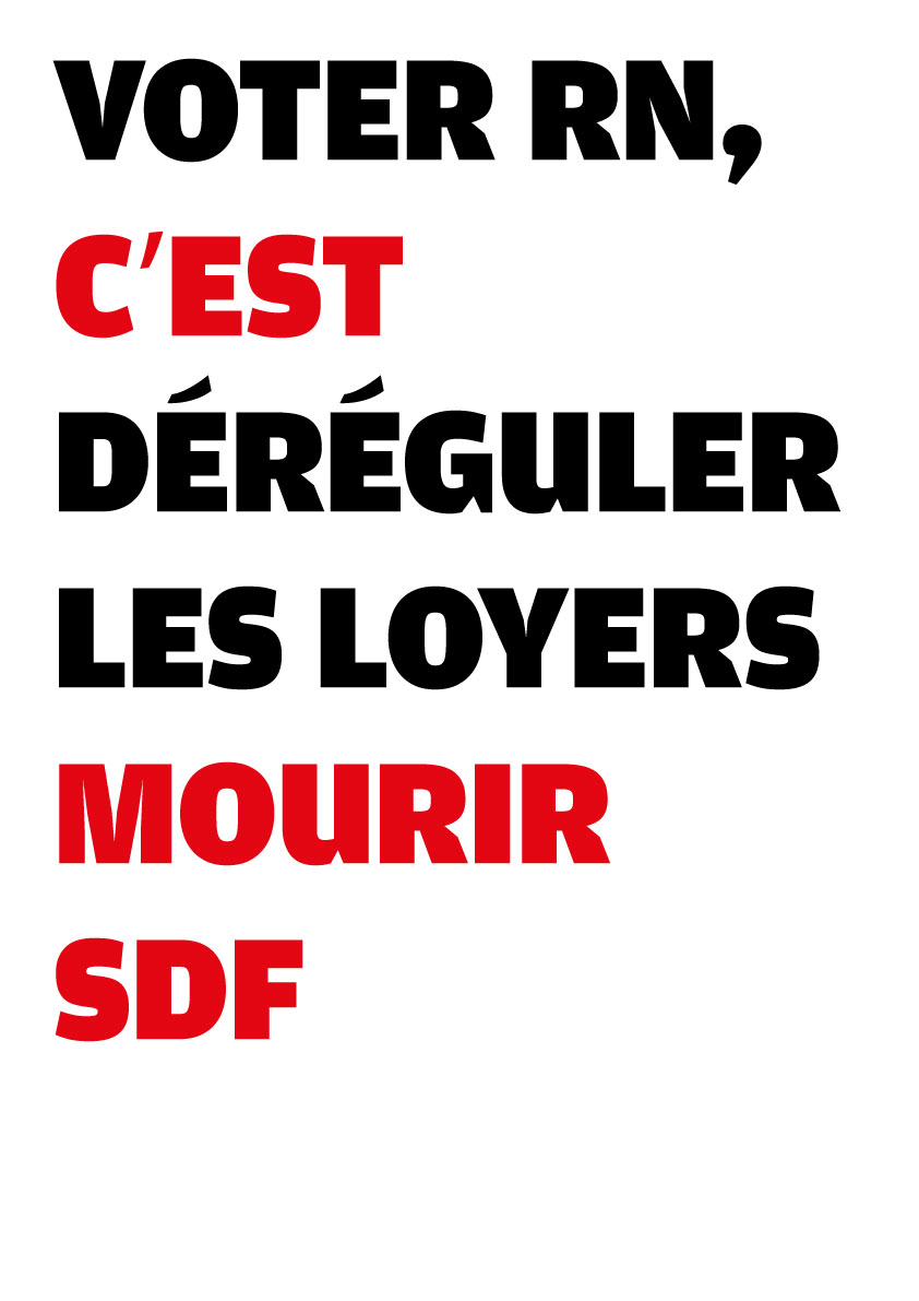 Avec des camarades atterrés par la situation politique en France, nous avons conçu une série de 25 visuels pour dénoncer la politique mortifère du RN. N’hésitez pas à les télécharger d’un simple clic droit et les diffuser sur le web (avec le format .jpg), ou les imprimer (à partir du format .pdf, en A3 ou A4, disponible plus bas).
